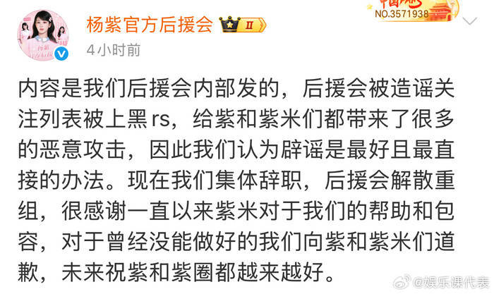 2026-04-18 07:40:10分类:百科阅读(70688) 2026年4月14日,杨紫官方后援会被曝异常点赞负面内容并关联小号发布争议信息,次日凌晨发布的“误触致歉”声明,因回避核心矛盾遭遇粉丝集体抵制。此次事件实为长期积怨的爆发点——后援会不仅被指公器私用(如官号拉黑提意见粉丝、向工作室索要特权)、财务不透明(抽奖奖品长期拖欠),更被质疑压制粉丝合理诉求(如妆造团队问题反复反馈无效),导致沟通桥梁功能彻底瓦解。粉丝诉求从问责升级为体系重构,超76%声量要求解散重组或由工作室收回账号权限。